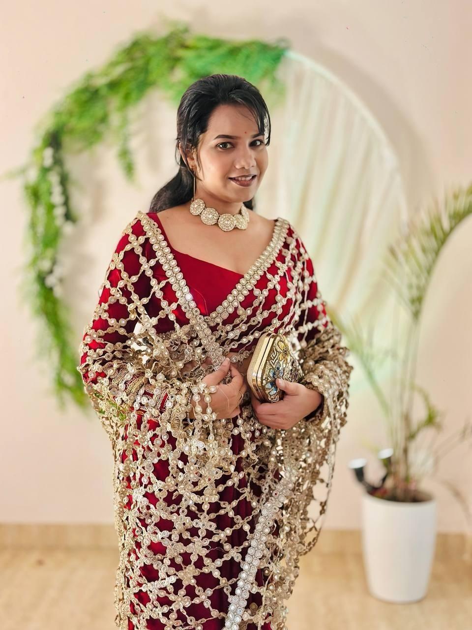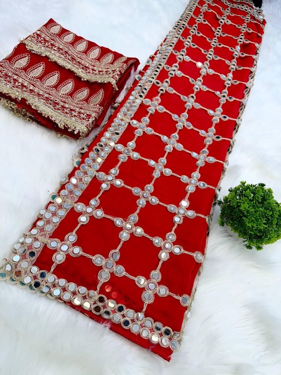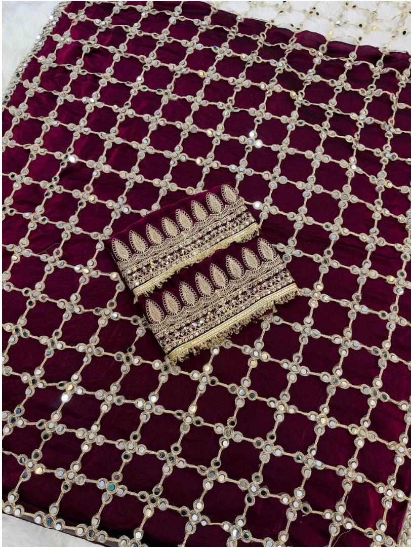 Designer Fendy Silk Maroon Color Saree with Mirror Work & Unstichhed Blouse