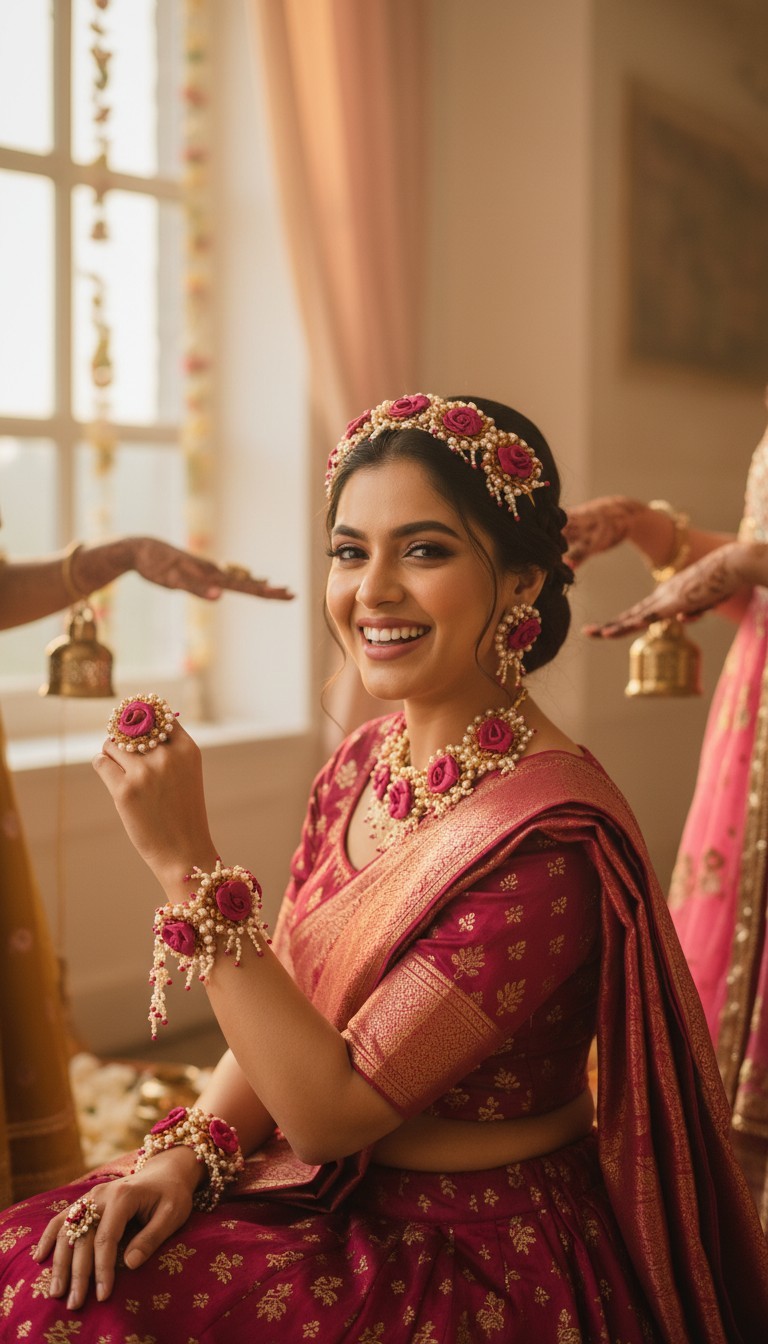 ✔ Lightweight & easy to wear✔ Skin-friendly materials✔ Vibrant floral look for daytime ceremonies✔ Reusable artificial flower jewelry✔ Handmade with care