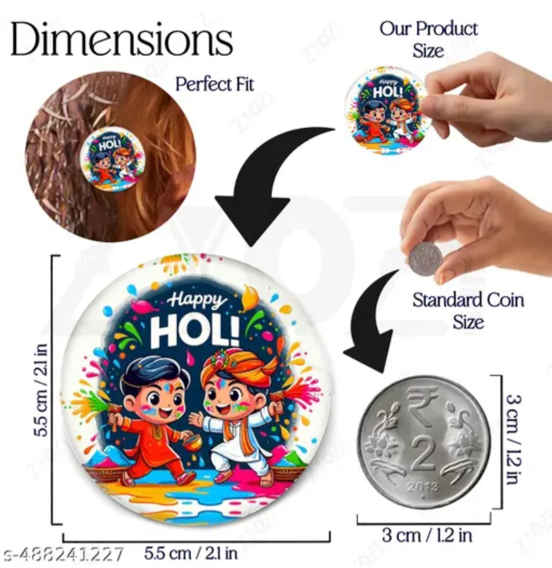 Perfect for family gatherings, Holi parties, school events, office celebrations, and community festivals, these badges are a fun way to create memorable moments. Each badge symbolizes joy, identity, and celebration—making them ideal as party favors, return gifts, or decorative accessories.