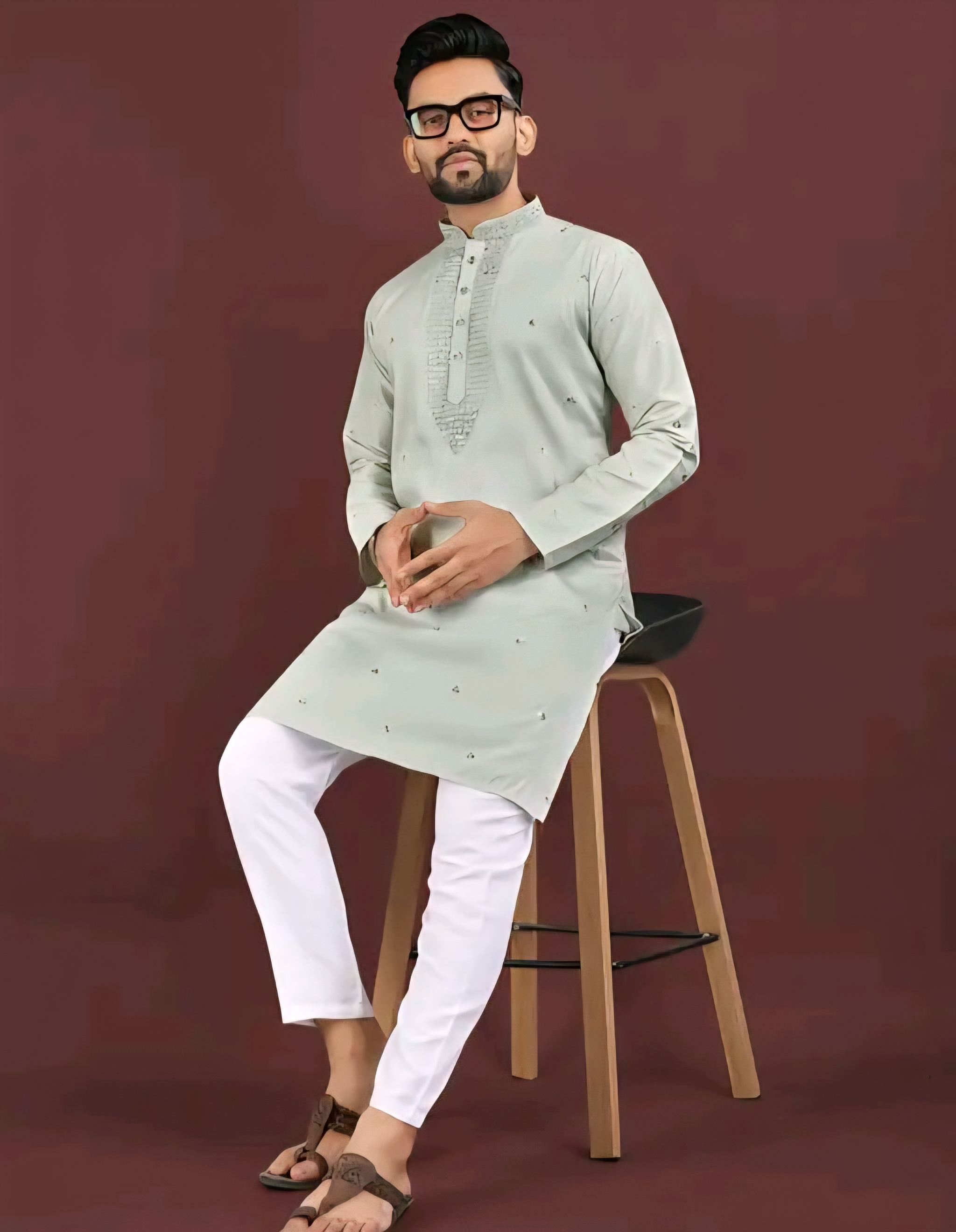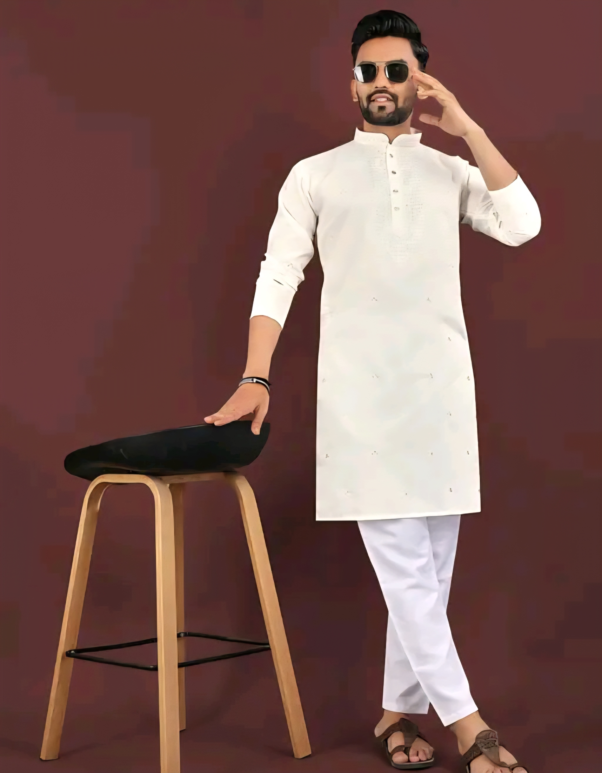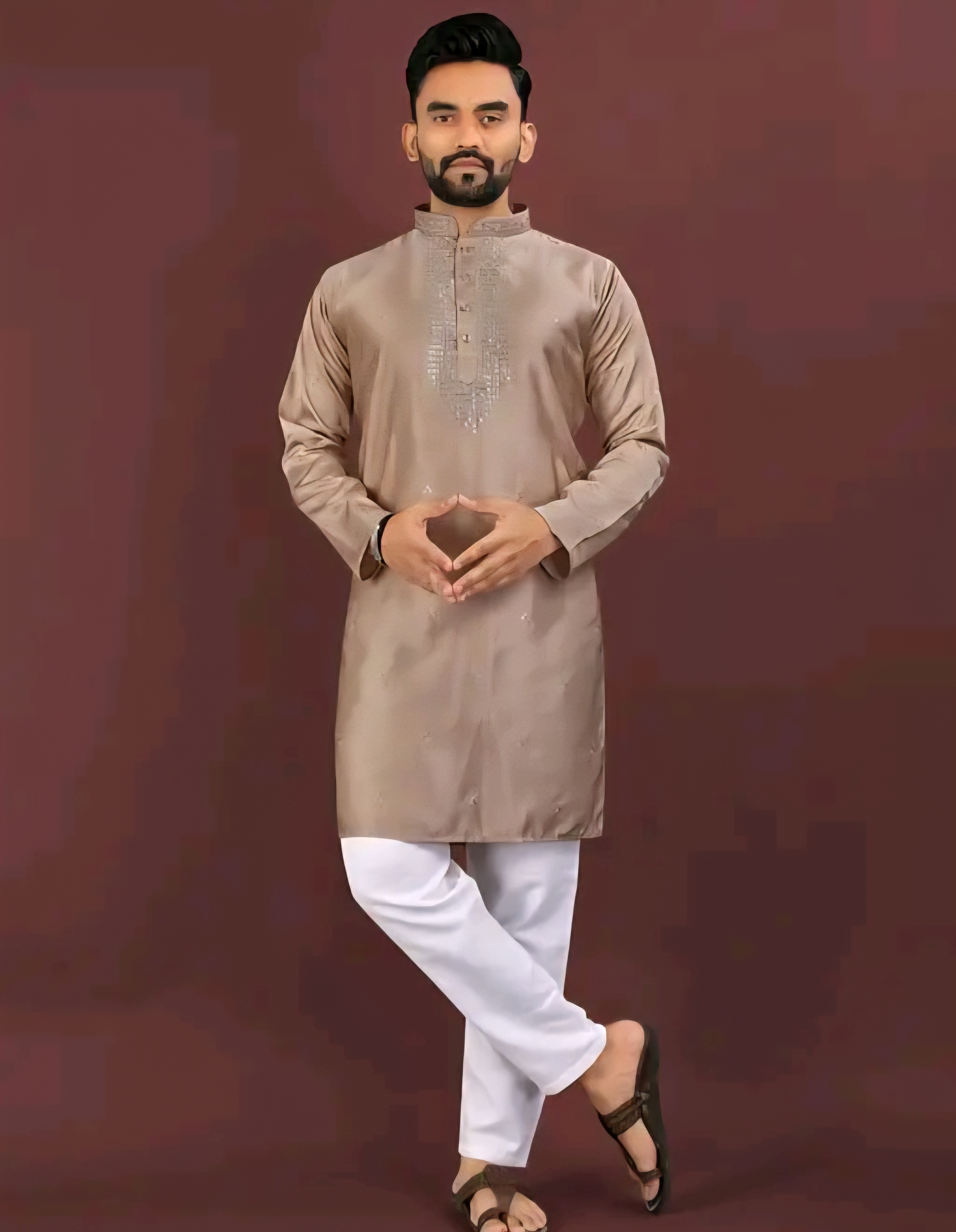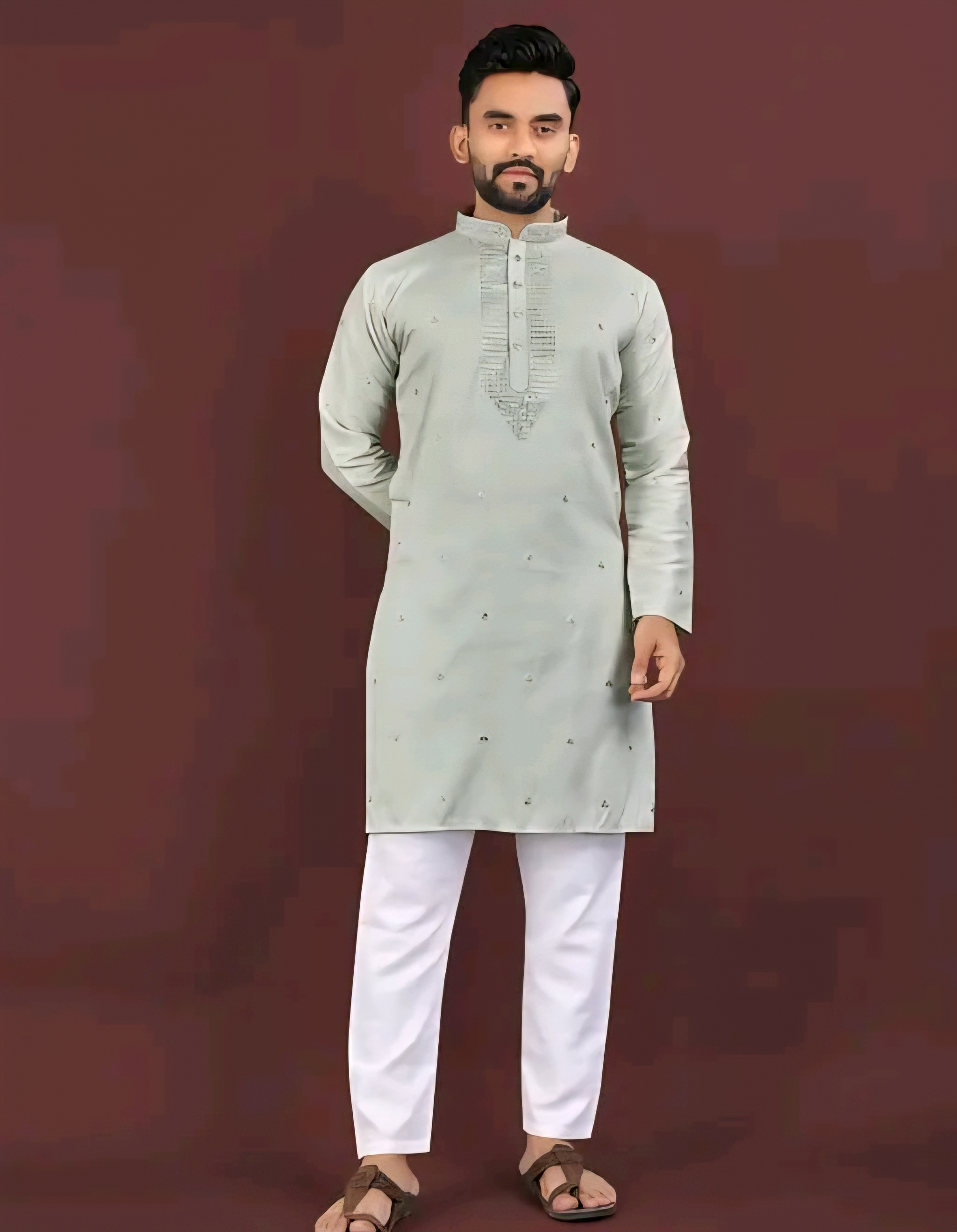 The kurta features intricate embroidery work that adds a refined traditional touch, while the long sleeves and classic silhouette ensure comfort and effortless style. Designed as a single kurta, it pairs beautifully with churidar, pajama, dhoti, or even trousers for a modern Indo-ethnic look.