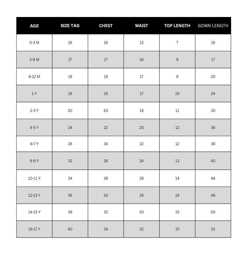 Sizes: 1 Year to 15 Years (Refer Size Chart)